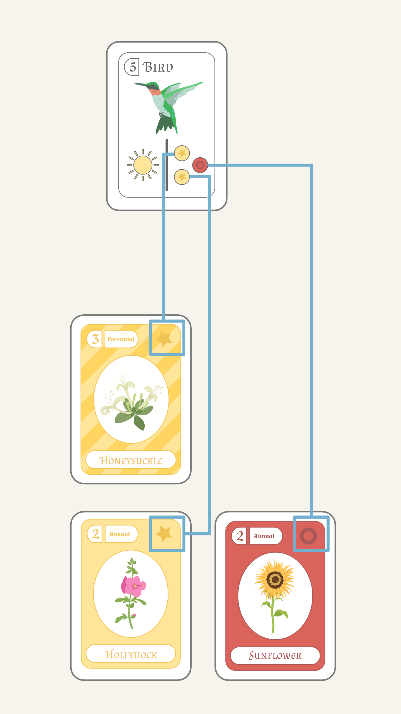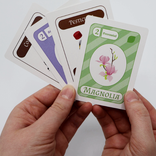 • Play six types of flower cards and use different color combos to attract the six different types of pollinators